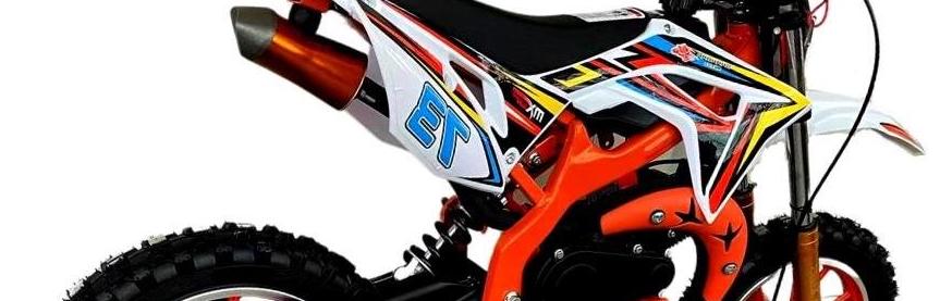 Esta motocross cuenta con un motor de gasolina de 2 tiempos de 49cc, enfriado por aire. Cuenta con un tanque de gasolina mediano, tolvas y plásticos reforzados, asiento mediano comfort, cuadro pintado a color de la carrocería y suspensión delantera de horquilla tradicional. ¡El favorito de la gente para iniciar en el mundo del cross!