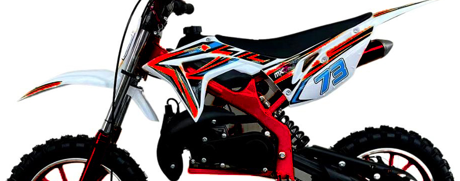 Esta motocross cuenta con un motor de gasolina de 2 tiempos de 49cc, enfriado por aire. Cuenta con un tanque de gasolina mediano, tolvas y plásticos reforzados, asiento mediano comfort, cuadro pintado a color de la carrocería y suspensión delantera de horquilla tradicional. ¡El favorito de la gente para iniciar en el mundo del cross!