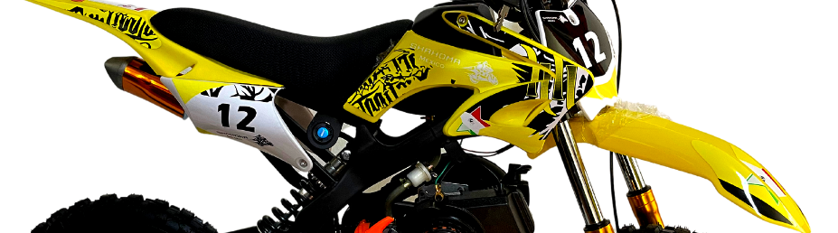 ¡Nuestro modelo de entrada a la marca! Esta minimoto estilo motocross cuenta con un motor de gasolina de 2 tiempos de 49cc, enfriado por aire.